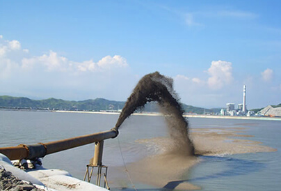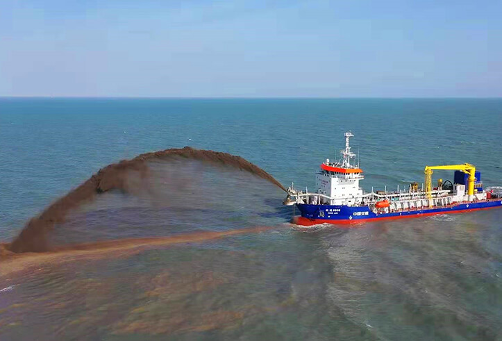 利用挖泥船將航道內(nèi)的泥土挖出后,使用管線將挖出的泥土排放到需要進(jìn)行回填的港口或碼頭上,通過(guò)泥土回填的方式來(lái)使港口和碼頭填筑到需要建設(shè)的高度,這便是吹填工程。